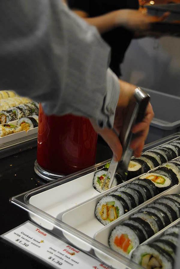 A new kaiten sushi bar (sushi bars with moving conveyor belts on which different kinds of sushi ...
