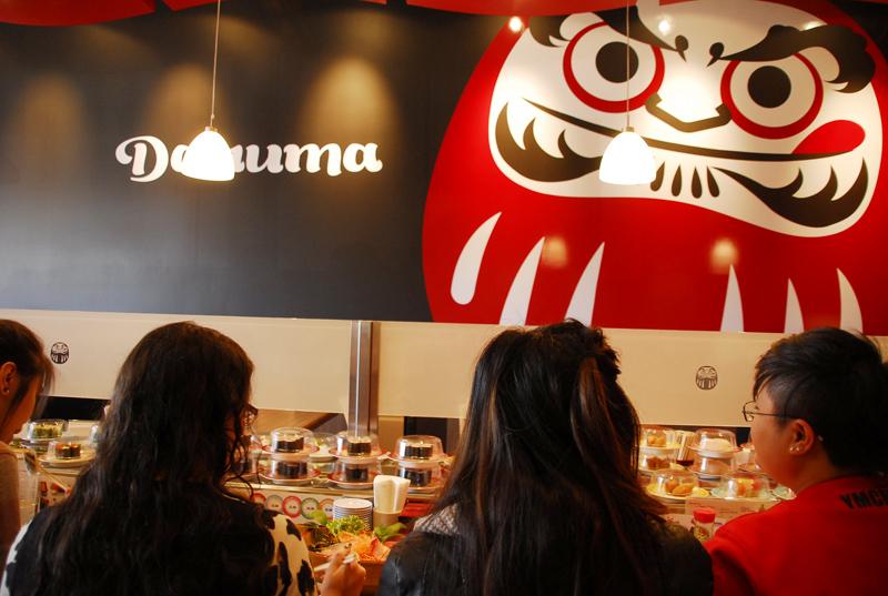 A new kaiten sushi bar (sushi bars with moving conveyor belts on which different kinds of sushi are displayed) called Daruma Sushi has opened in Botany, Auckland. It offers to customers seafood selected only from the freshest catches, purchased every morning from the neighbouring fish market.
