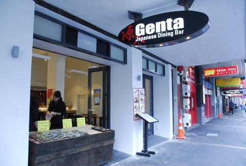 You may do a double take when you pass the spacious front windows of this place on the corner of Customs and Commerce streets. Whilst maintaining its very reasonable prices, Genta has had a serious facelift, transforming itself from an inexpensive izakaya into a rather sleek cafe? & bar. The interior is a long shotgun space, white walls discreetly lit, and a tableau of large sake bottles lining the opposite wall – backlit for maximum effect. The menu still has an A to Z of many izakaya-style dishes – try the okonomiyaki (Japanese savoury pancake) or the kushiage skewers – however there are now more international “fusion”-style dishes included. Amongst others, there is Genta’s original Tom Yum-style ramen (Japanese noodles in a spicy Thai broth), the Fresh Spring Rolls (again, Southeast Asian influence) and the coconut chicken curry, and a nasi goreng. More and more workers and professionals in the city are finding that the large number of choices on the menu and Genta’s convenient location make this ideal for either a quick lunch or a more leisurely affair. For those in a real hurry, there are the sushi packs lining Genta’s front window display. Genta is also happy to cater for parties; you can preorder sushi and larger dishes, when you book.